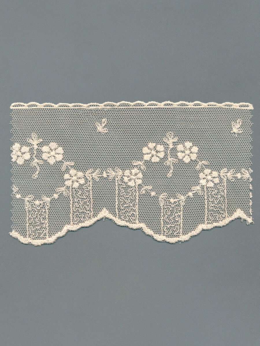 Created from Swiss tulle on original English cotton tulle machines, this 100% cotton embroidered fabric is pretty as a picture. Perfect for adding a touch of vintage class to any outfit, this outstanding quality cotton tulle lace is also 100% organic. We make light work of your design with this unique gallon shaped embroidery trim. High quality and durable, this machine embroidery gallon can be easily sewed on to any fabric on both sides. The unique gallon shape embroidery gives this trim a modern and unique feel.