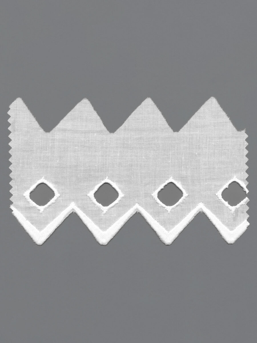 Fresh and summery, this machine sewable, 100% cotton eyelet lace fabric is perfect for children’s clothing or for adding a light feminine touch to adult apparel. High-end cotton adds breathable chic to any outfit. Put the finishing touch to your masterpiece with this pretty lace edging. One straight edge allows easy attachment to any garment whilst the width of this lace edging allows for more versatility. Pretty and practical for everyday use. Pretty and practical, this trimming features one straight edge for easy attachment to garments.