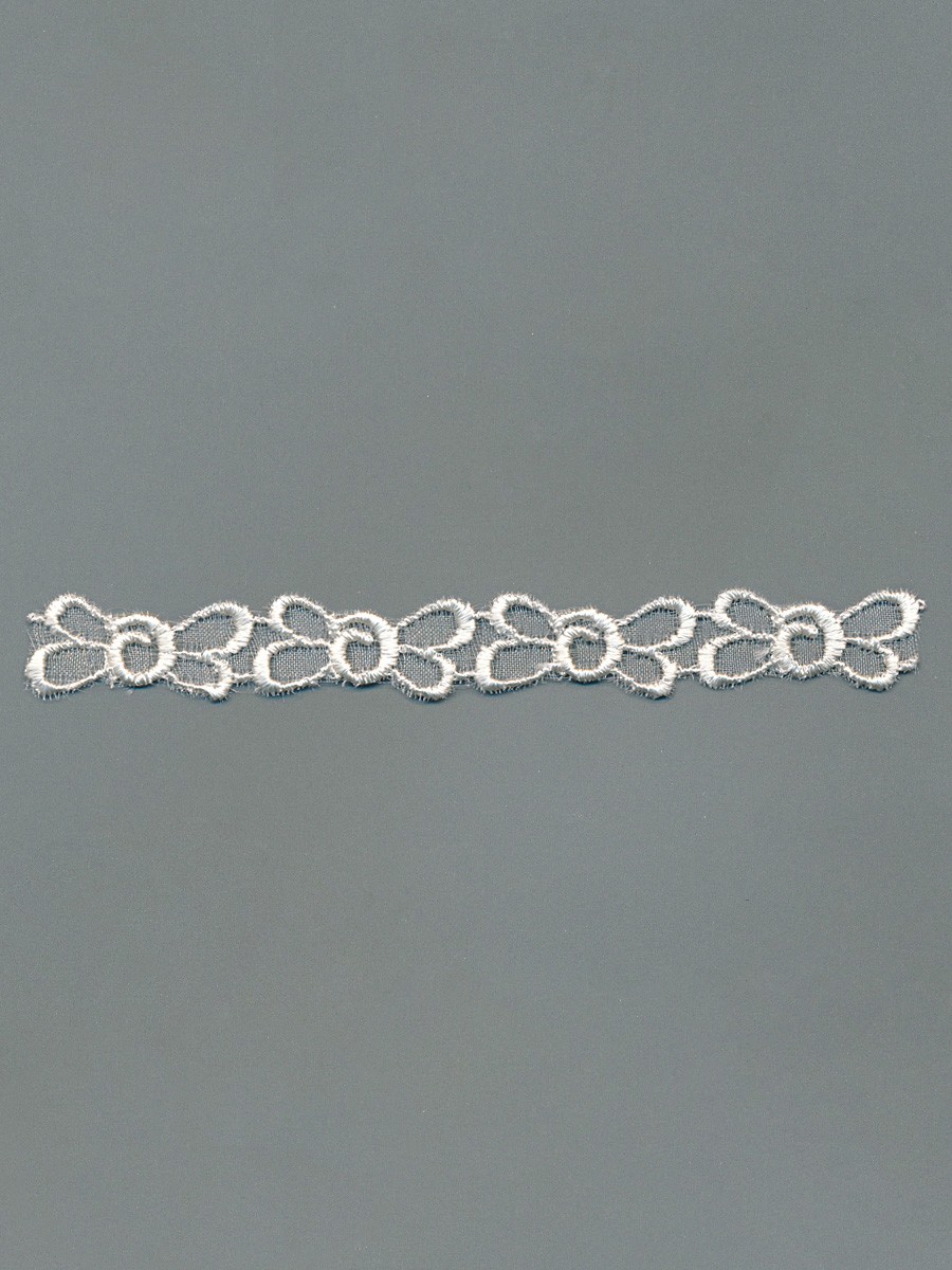 Translucent and delicate, this organdy lace is machine embroidered for a pretty vintage feel. High quality organdy is embroidered in a delicate viscose rayon pattern to to create this beautiful polyester lace. We make light work of your design with this unique gallon shaped embroidery trim. High quality and durable, this machine embroidery gallon can be easily sewed on to any fabric on both sides. The unique gallon shape embroidery gives this trim a modern and unique feel.